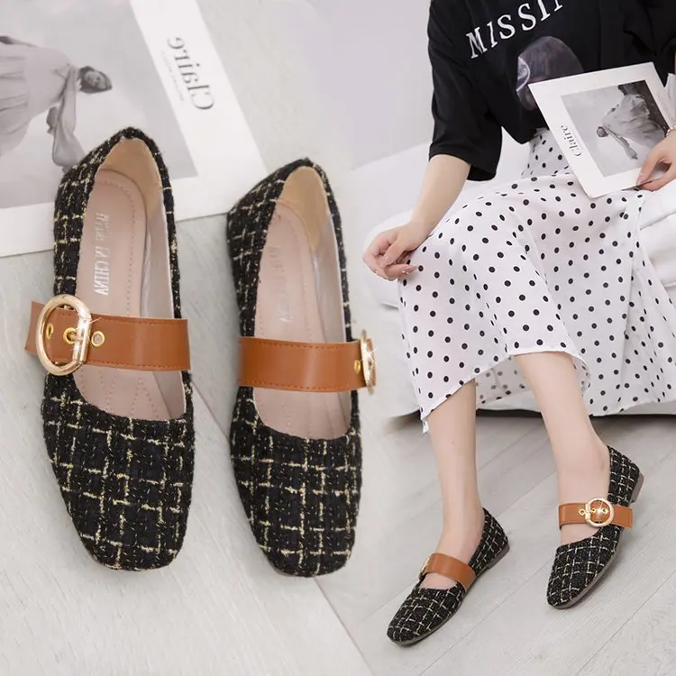 Женские туфли на плоской подошве 2021, женские туфли в клетку на плоской подошве, удобные туфли на плоской подошве с круглым носком, модные лоф...