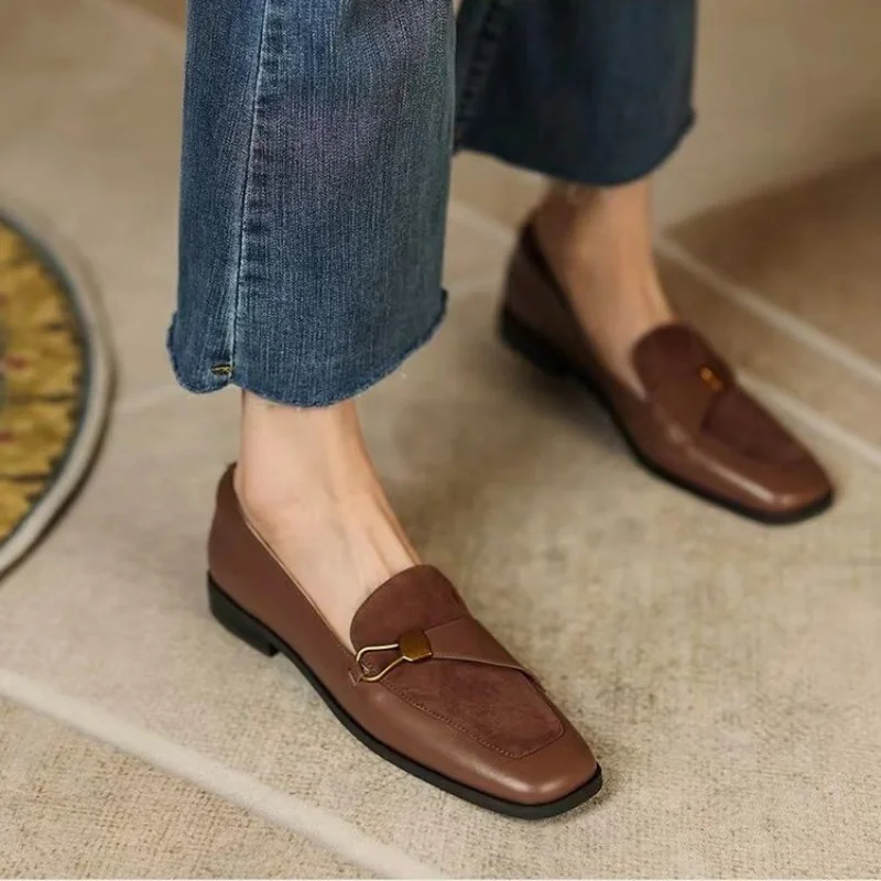 Женские туфли на плоской подошве 2023, модная женская обувь без шнуровки, женская обувь с квадратным носком, повседневные Роскошные лоферы