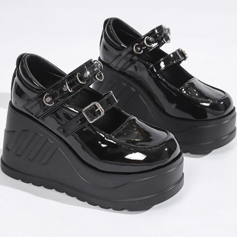 Женские туфли на толстой подошве, черные туфли мэри джейн в стиле панк, Размеры 35-42
