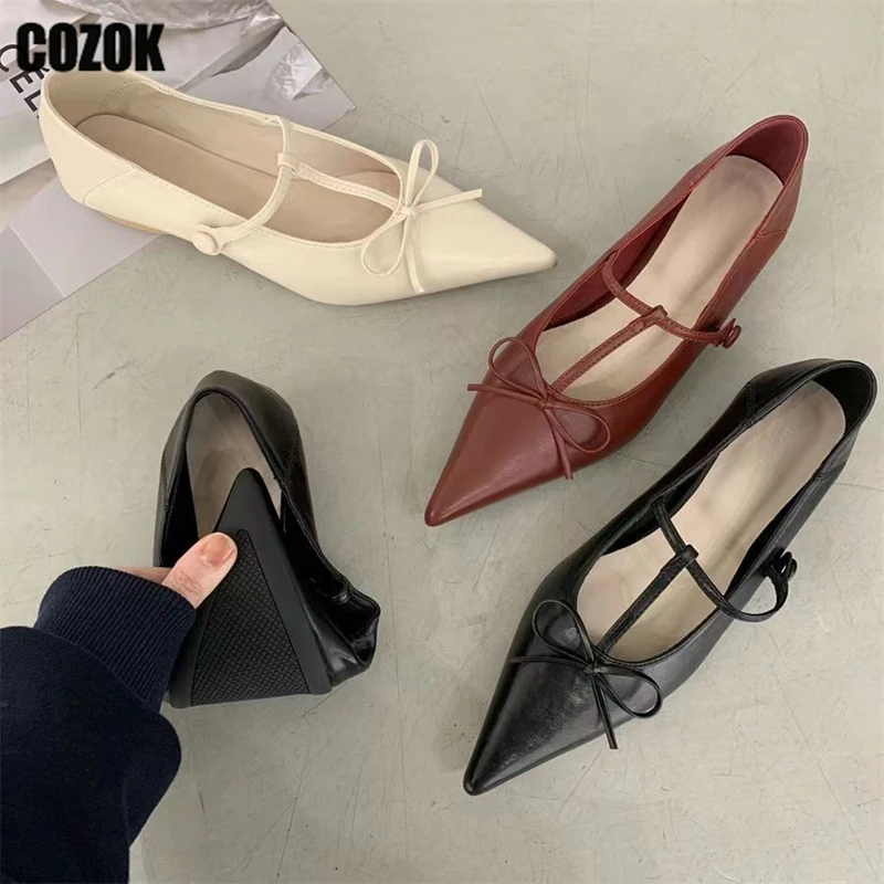 Женские туфли с бантом на плоской подошве, элегантные Мокасины с острым носком и Т-образной шнуровкой, лето 2023