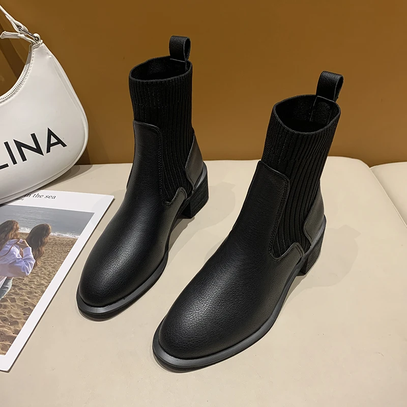Женские туфли с острым носком Новинка Осень-зима 2021 Женские Повседневные вязаные короткие сапоги на высоком каблуке женские удобные и унив...