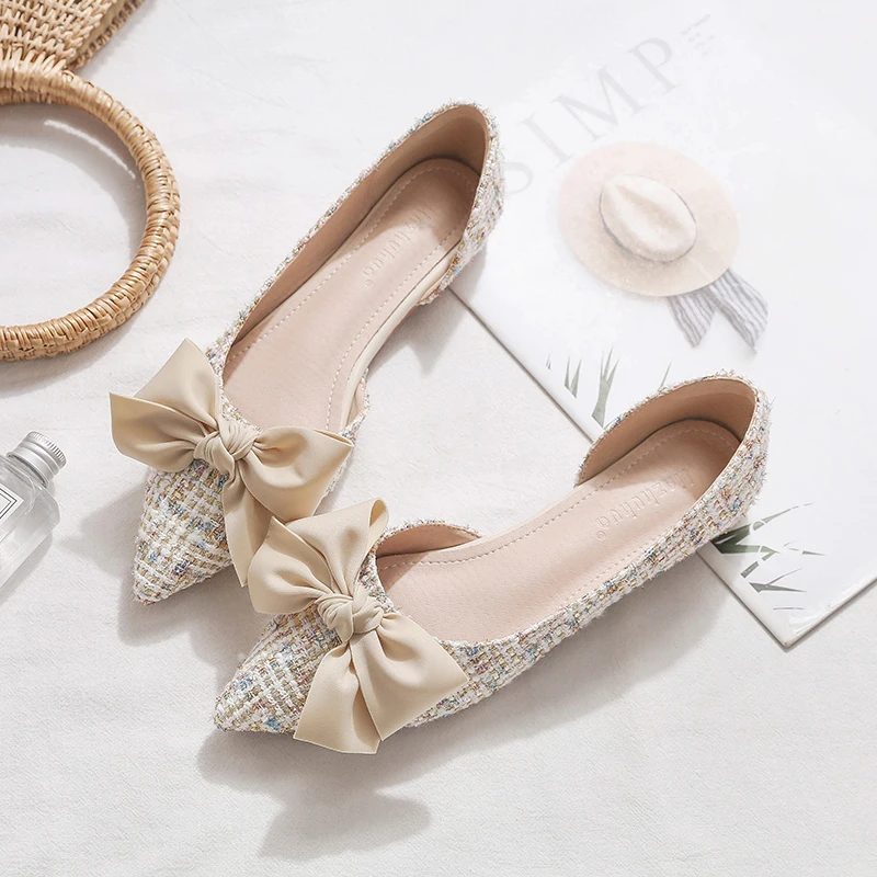 Женские туфли с острым носком, заостренный носок, с боковым бантом, легкие, на плоской подошве, для вождения, весна/осень
