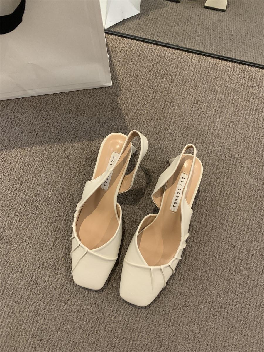 Женские туфли с открытой пяткой Туфли на высоком каблуке Туфли на толстом каблуке Модные плиссированные туфли из коровьей кожи Элегантные женские сандалии Zapatos De Mujer 35 абрикосовый