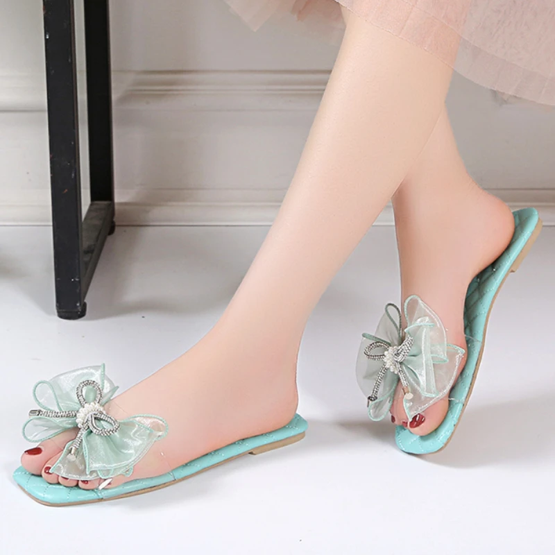 Женские туфли 2023, прозрачные женские тапочки с бантом, Летние повседневные женские тапочки, однотонные женские пляжные сандалии на низком каблуке