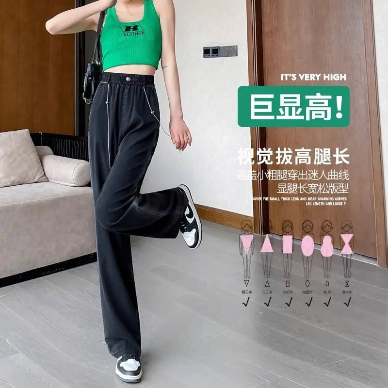 Женские узкие черные джинсы с градиентом, свободные широкие брюки из вискозы, Новинка лета 2024