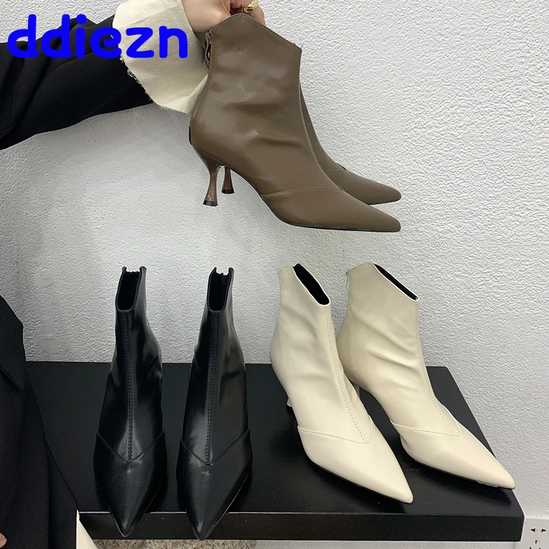 Женские уличные ботинки, модная обувь с острым носком, женские ботинки челси на тонком каблуке, короткие женские ботильоны в западном стиле на молнии