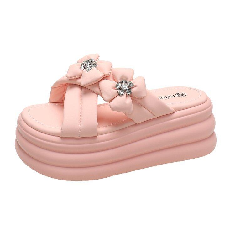 Женские уличные тапочки-шлепанцы на толстой подошве, лето 2025, новые, популярные в интернете, с цветами, простые и универсальные, с открытым носком, на перемычке 39 розовый