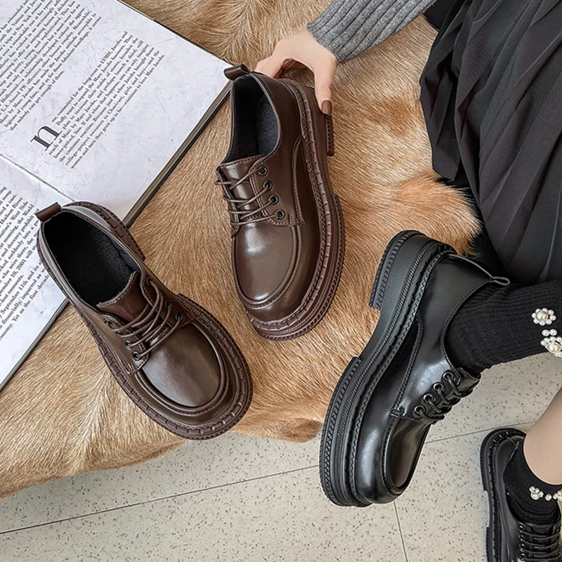 Женские универсальные туфли, Осенние оксфорды в британском стиле, осенние туфли на платформе, новинка, Кожаные криперы в стиле преппи и ретр...