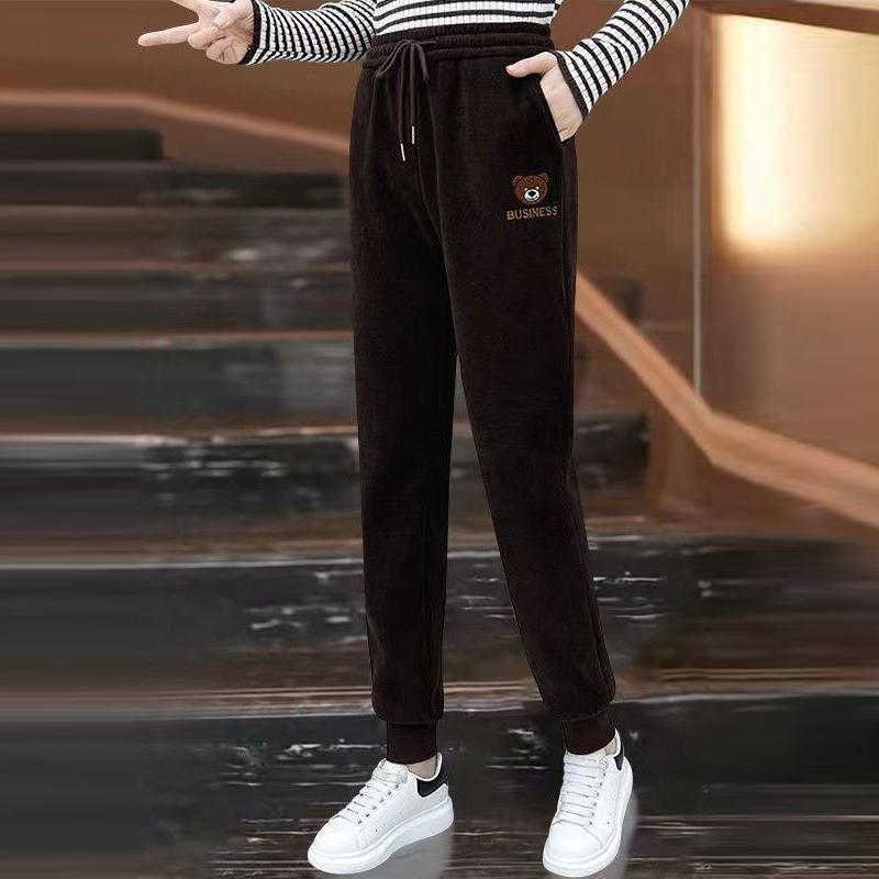 Женские утолщенные вельветовые спортивные брюки с высокой талией, повседневные брюки прямого кроя с эластичной резинкой на талии на шнурке, осень-зима XL кофейный