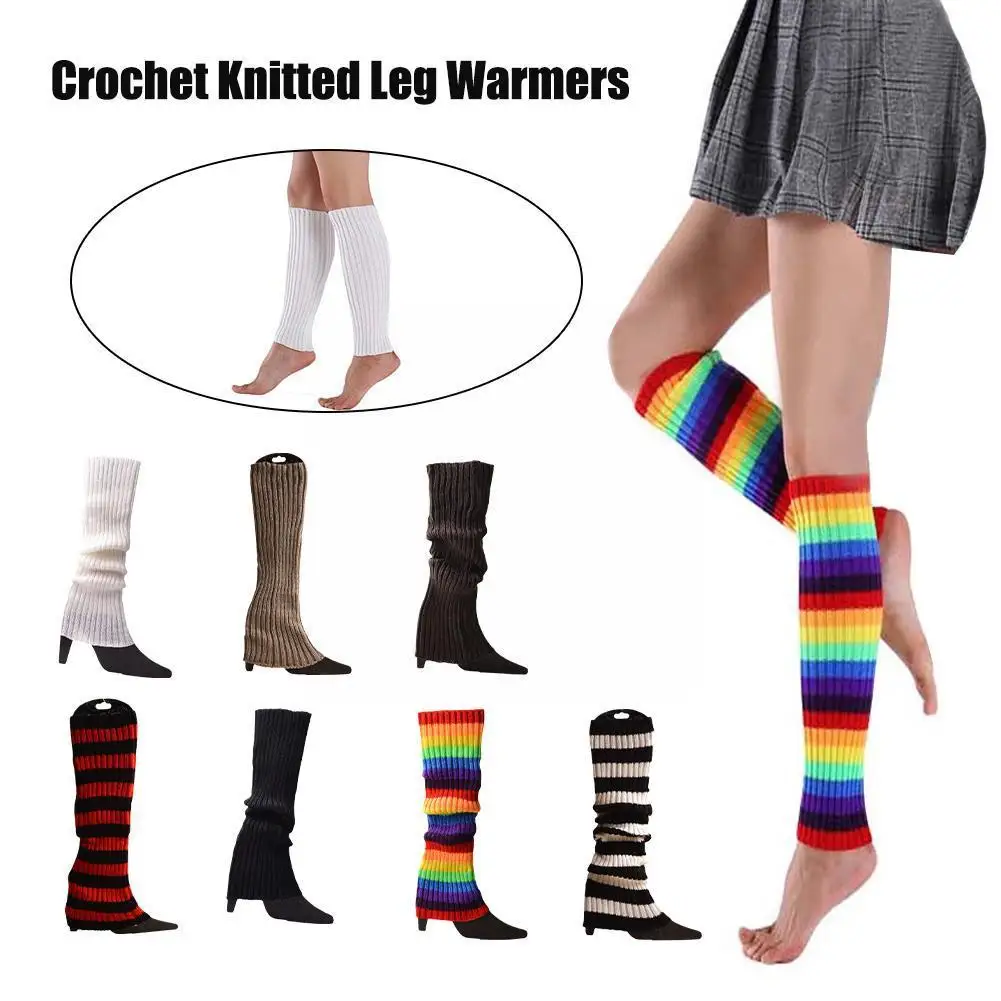 Женские флуоресцентные неоновые цветные вязаные гетры ребристые танцевальные яркие ранцевые носки Хэллоуин вязаные крючком чулки без ног G4h9