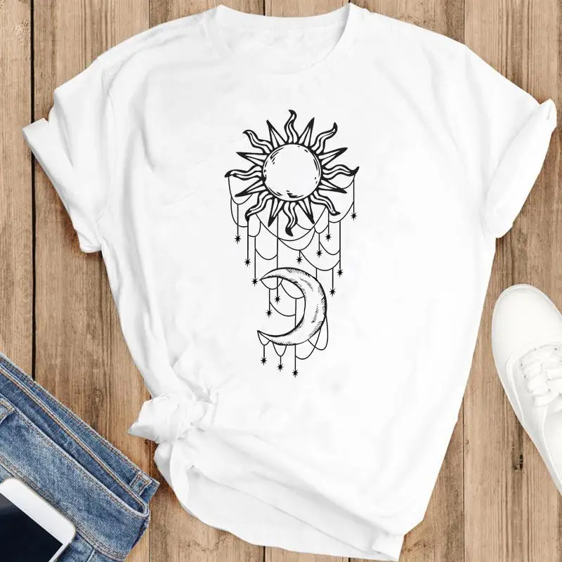 Женские футболки с графическим рисунком, женские модные футболки с принтом Луны, милые футболки в стиле 90-х, одежда с коротким рукавом и муль...