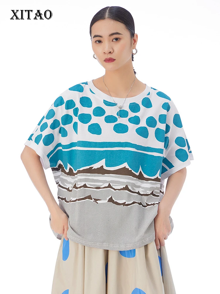 Женские футболки с круглым вырезом XITAO, летние повседневные футболки свободного покроя с тонким принтом HQQ1424