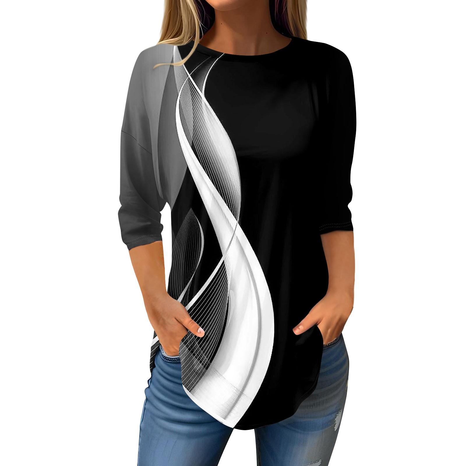 Женские футболки с рукавами 3/4, однотонные пуловеры, летние весенние топы, блузки L чёрный