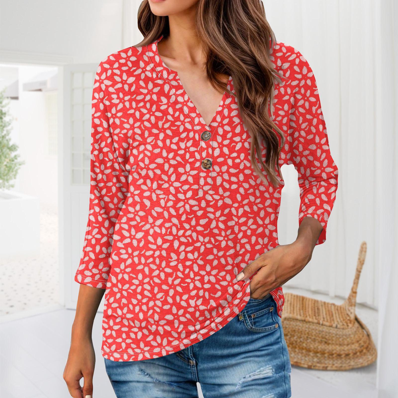 Женские футболки с рукавами 3/4, полосатый лоскутный пуловер, летние весенние топы, блузки, женские летние топы XL красный