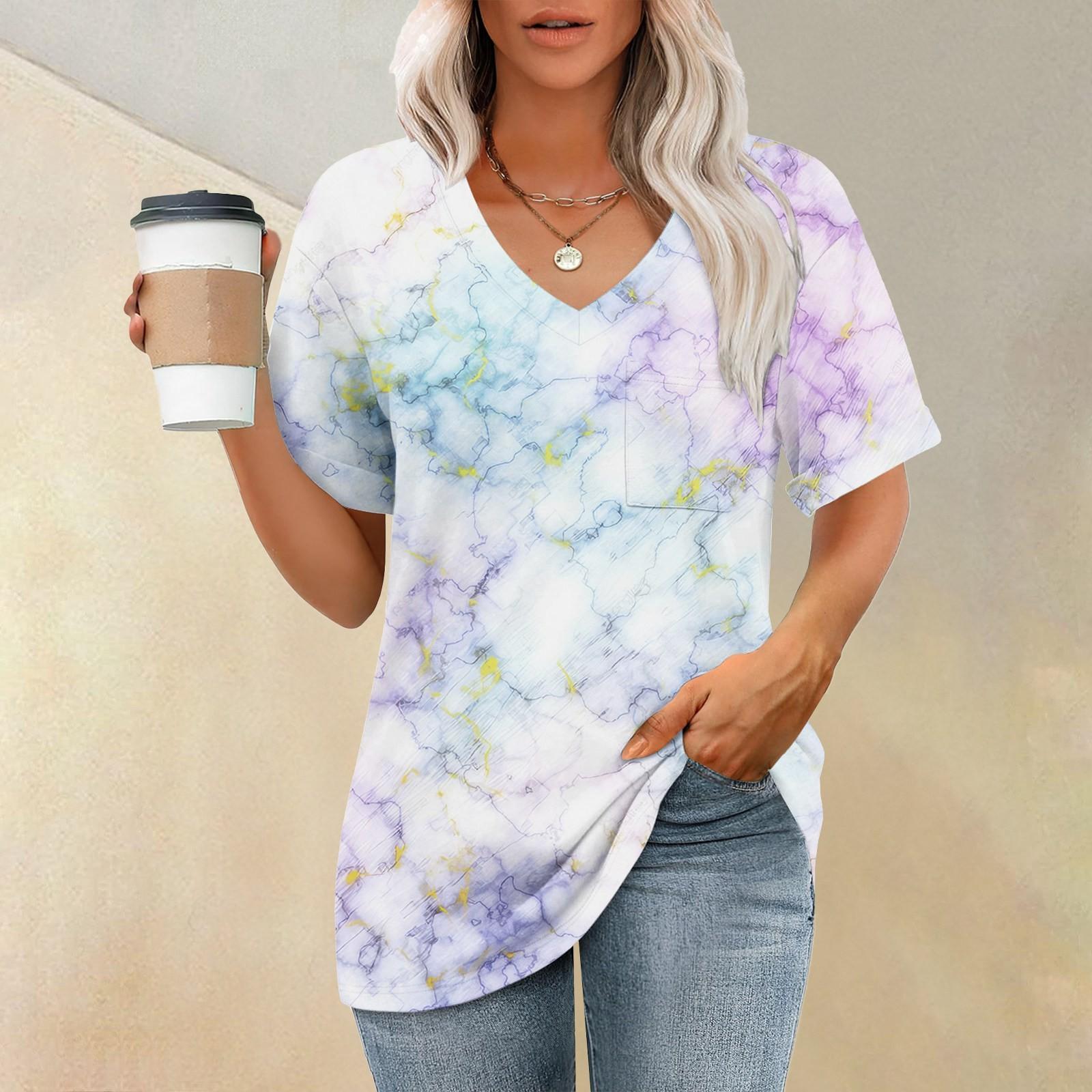 Женские футболки с V-образным вырезом и коротким рукавом, летние топы, повседневные базовые футболки, модные XL фиолетовый