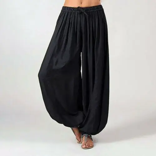 Женские хлопковые брюки, свободные однотонные брюки с высокой талией, на лето, размера плюс