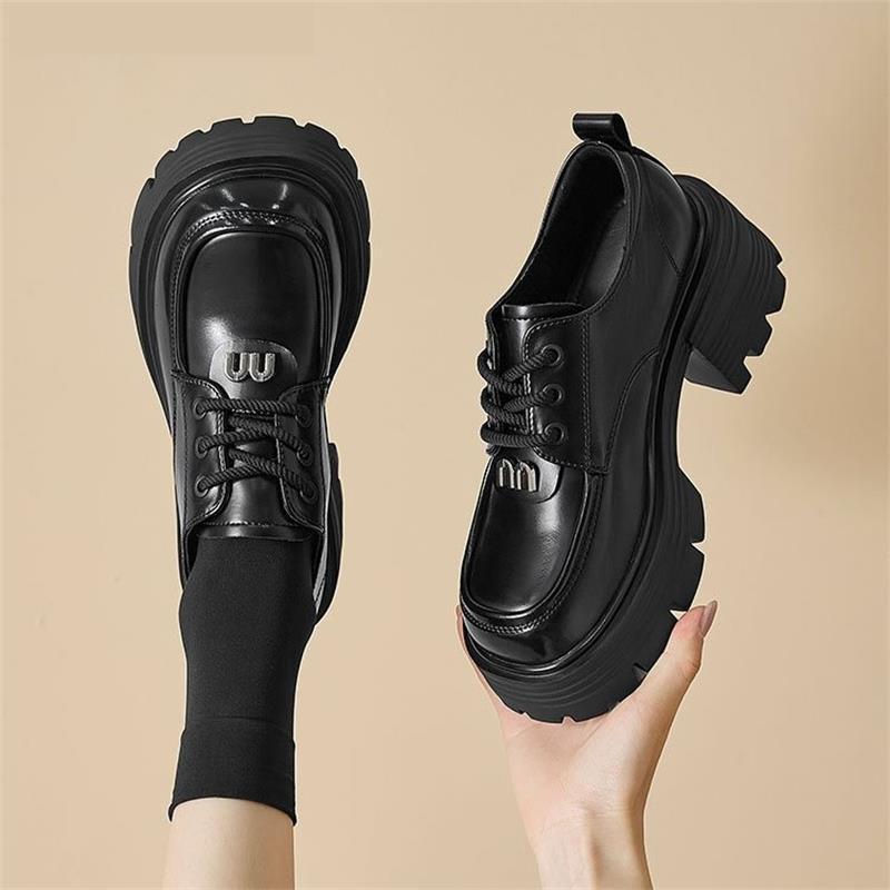 Женские черные кожаные лоферы 2024: Ботинки в британском стиле на толстой подошве из мягкой кожи на шнуровке для весны и осени. Size 35 грязно-белый