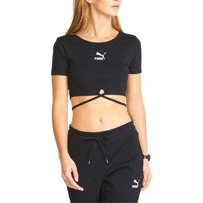 Женские черные повседневные топы Puma Classics в рубчик с круглым вырезом с короткими рукавами 533, Черный