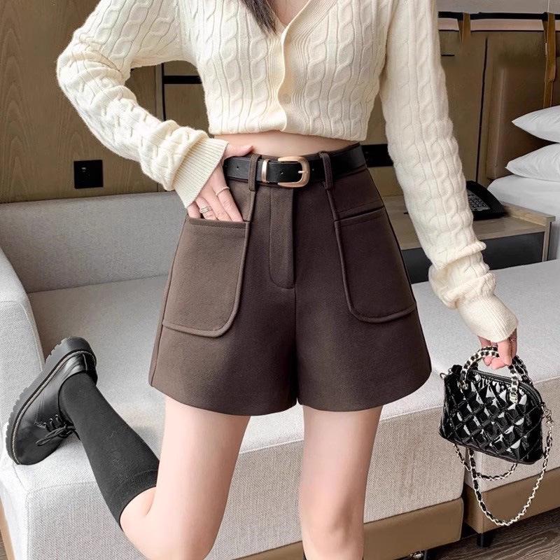 Женские черные шерстяные шорты А-силуэта, большого размера, коллекция Осень/Зима 2025 - Корейский стиль, Универсальные, Свободный крой с широкими штанинами XS