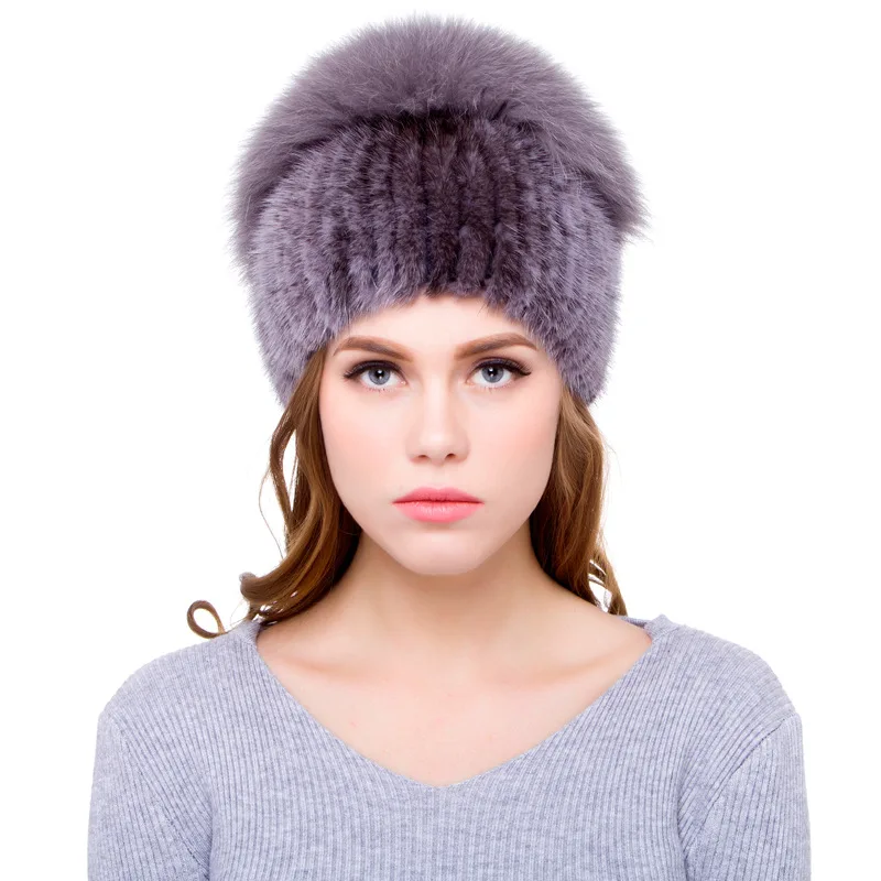 Женские шапочки ручной работы из натурального меха норки на осень и зиму, теплые шапки с лисьим мехом, VF5049