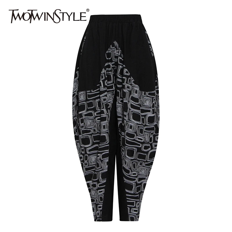 Женские шаровары с принтом TWOTWIN, черные, эластичные, с высокой талией, свободные, в Корейском стиле, на весну, 2021