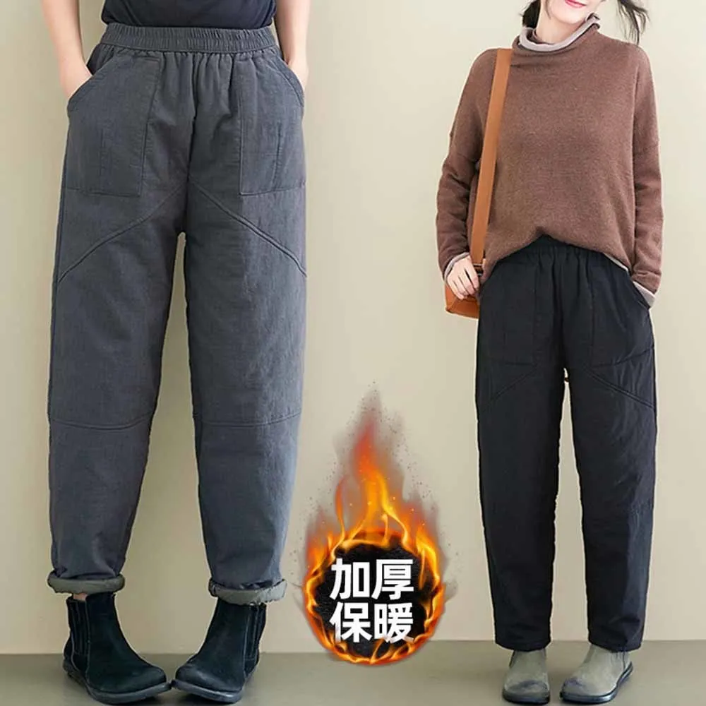 Женские шаровары с эластичным поясом, утепленные Хлопковые Штаны, Свободные повседневные утепленные шаровары, Осень-зима