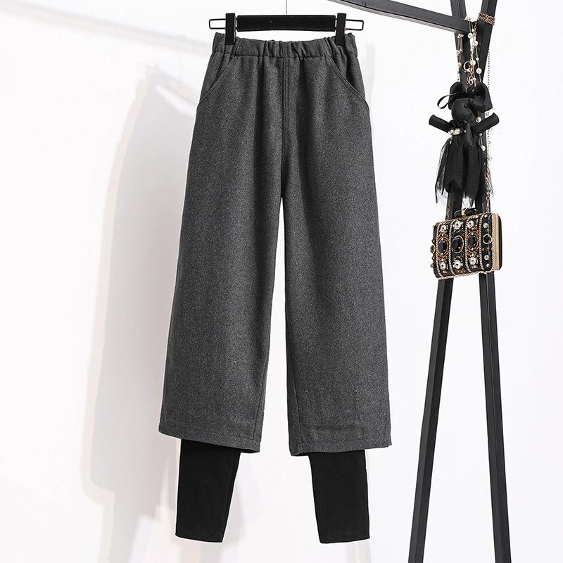 Женские шерстяные брюки буткат большого размера с эластичной талией - осенне-зимний стиль, дизайн из двух частей, широкие штанины, прямой крой длиной до щиколотки Large (L) серый