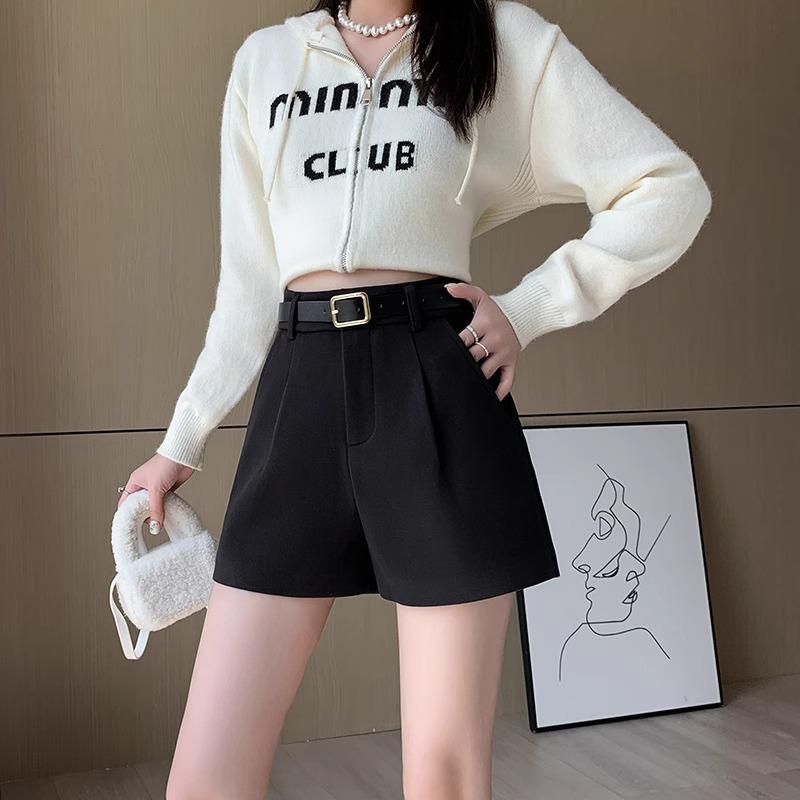 Женские шерстяные шорты с высокой посадкой: Осень/Зима 2024 Модные шорты с эффектом похудения Large чёрный