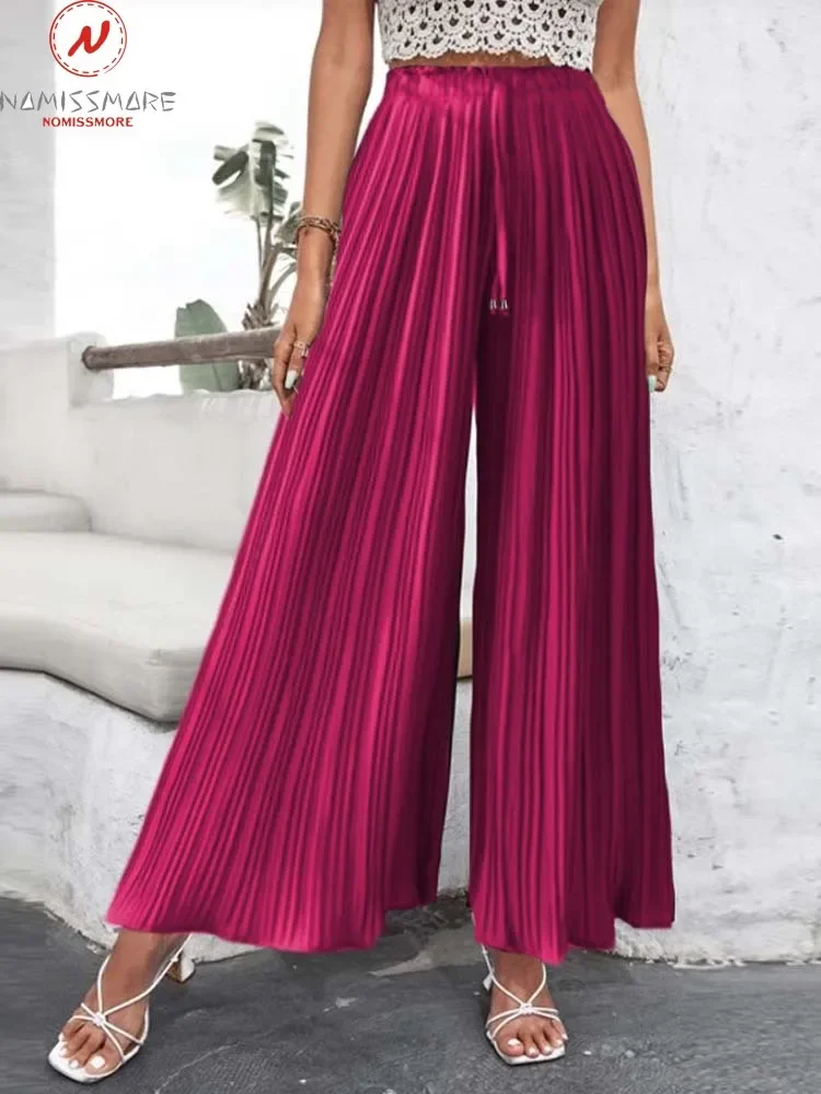 Женские широкие брюки на завязках, однотонные повседневные свободные плиссированные брюки с высокой талией и оборками в английском стиле на лето