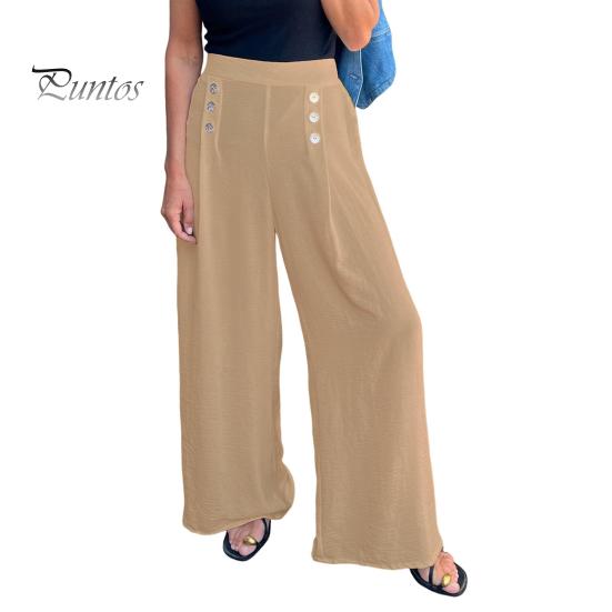 Женские широкие брюки с высокой талией, украшенные пуговицами, повседневные свободные брюки для повседневной носки, путешествий, офиса L хаки