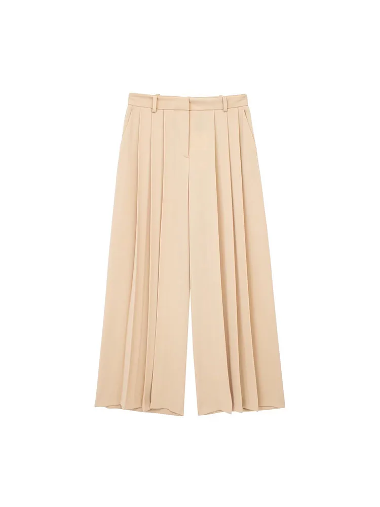 Женские широкие брюки BSK & ZA & TRF с плиссированным украшением, свободные брюки с высокой талией на молнии, 2023, 2674/395