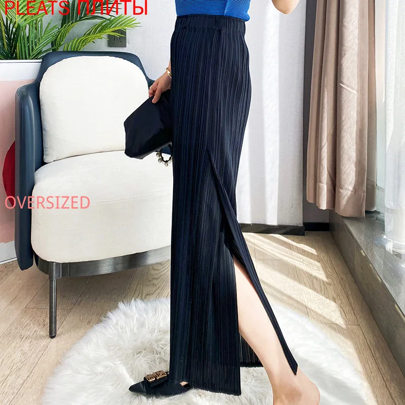 Женские широкие брюки Miyake Folds, открытая сбоку, прямая драпировка, тонкие брюки с высокой талией, летняя Новинка