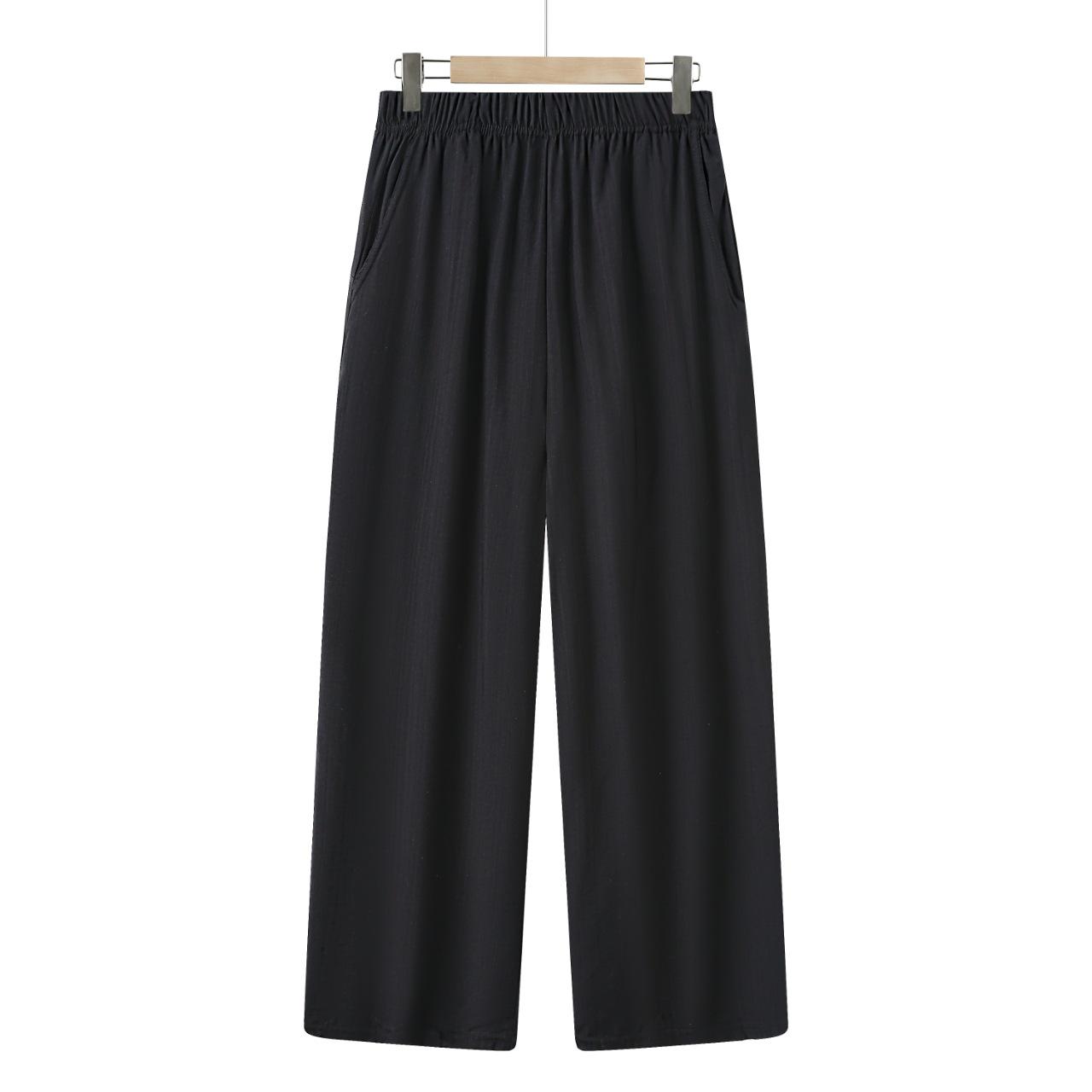 Женские широкие брюки Mom из хлопка и льна — летние, легкие, свободного кроя, длина девять точек 2XL чёрный