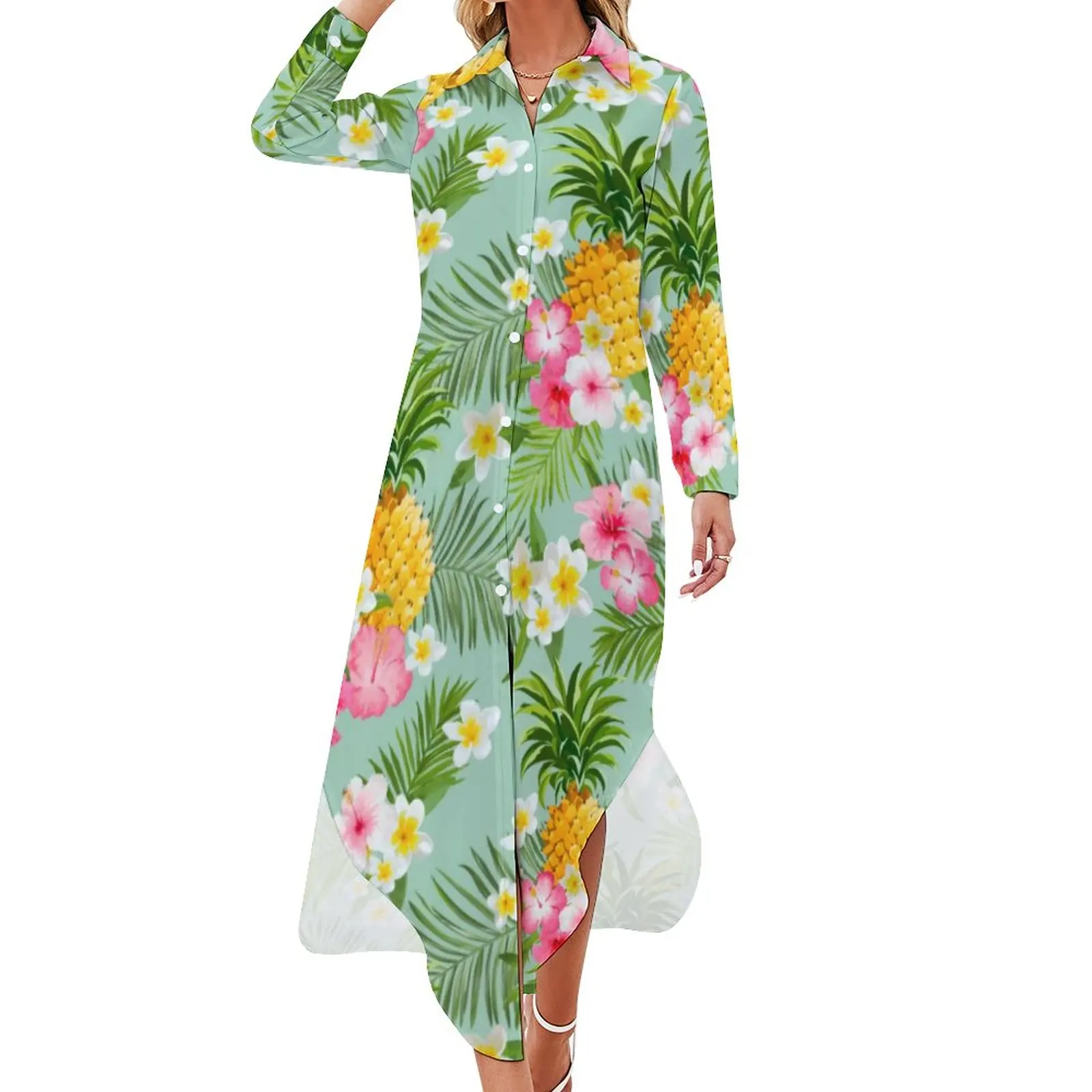 Женские шифоновые платья, с тропическим цветочным принтом, большие размеры