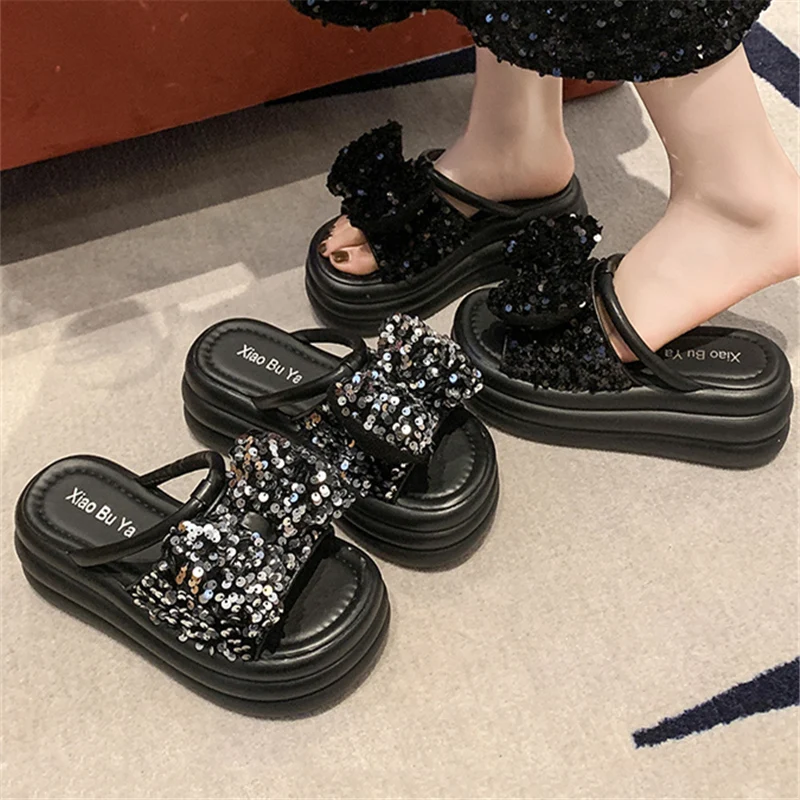 Женские шлепанцы из микрофибры, туфли на плоской платформе и каблуке с бантом-бабочкой, 2024