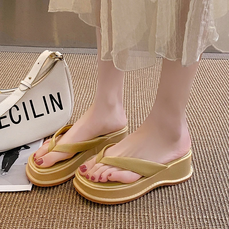 Женские шлепанцы на платформе, повседневные однотонные тапки на каждый день, 2023