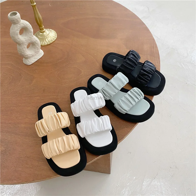 Женские шлепанцы на танкетке, элегантные сланцы, на высоком каблуке, без застежки, уличные тапочки в Корейском стиле, лето