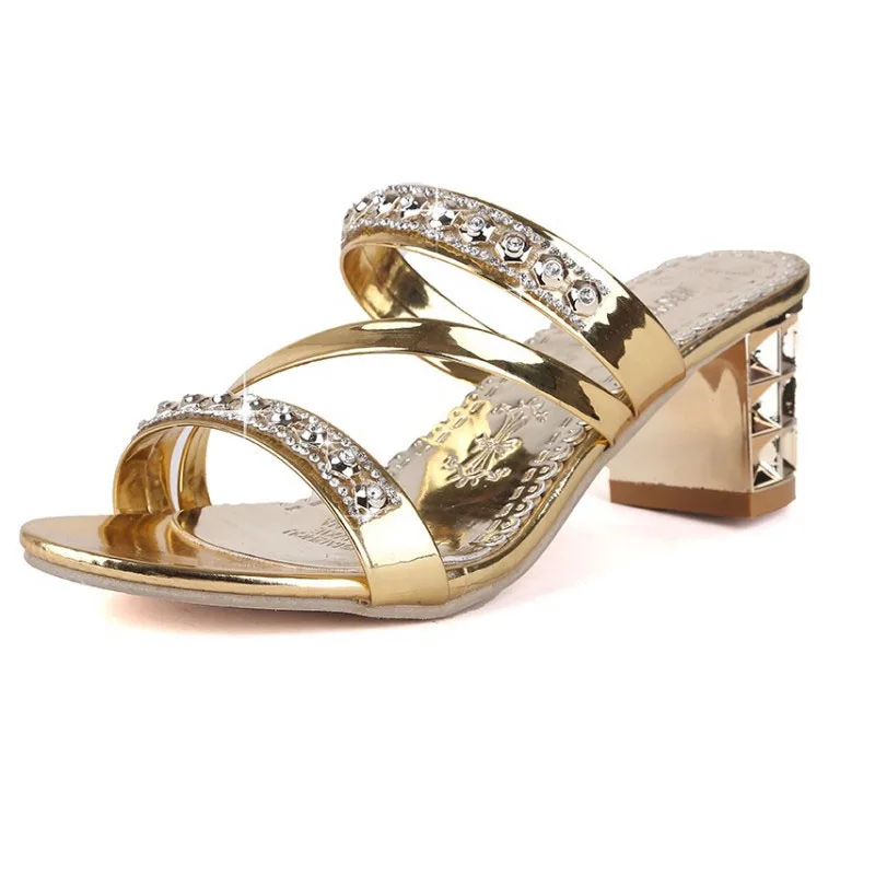 Женские шлепанцы, роскошные брендовые босоножки со стразами на квадратном каблуке, женские домашние босоножки