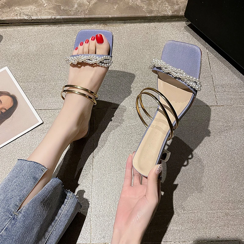 Женские шлепанцы, современные тапки с бусинами, Модные Элегантные повседневные, на шнуровке, 2023