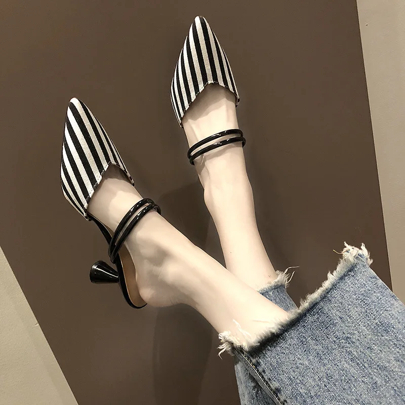 Женские шлепанцы с острым носком, полосатые, с полосками зебры, с вырезами, тапочки шлепанцы