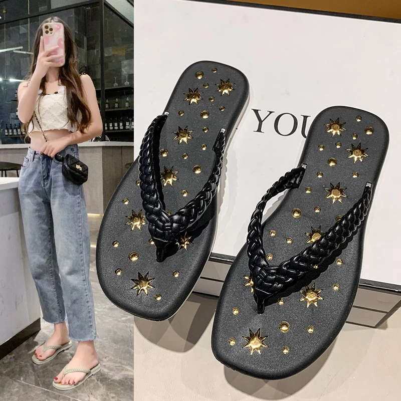 Женские шлепанцы с рисунком, повседневные сандалии на плоской подошве, удобные тапочки для улицы, летняя обувь