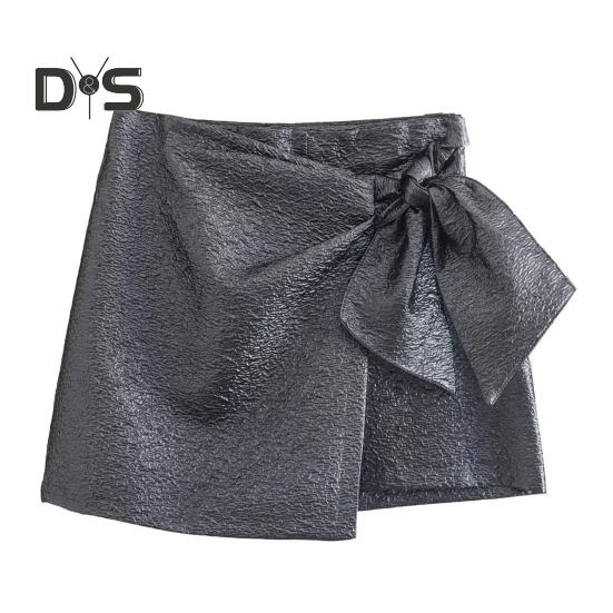 Женские шорты весна-осень мини-юбка стиль высокая талия рюшами бантом сплошной цвет глянцевые женские повседневные короткие брюки брюки клубная одежда для вечеринок M серый