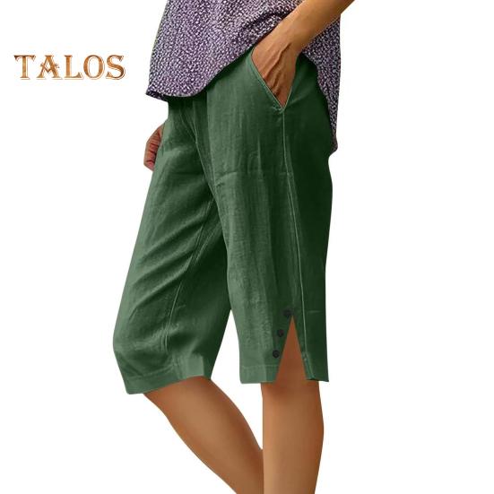 Женские шорты с эластичной талией, широкие повседневные шорты с карманами, однотонные, свободного кроя, для работы, школы, повседневные шорты S темно-зеленого