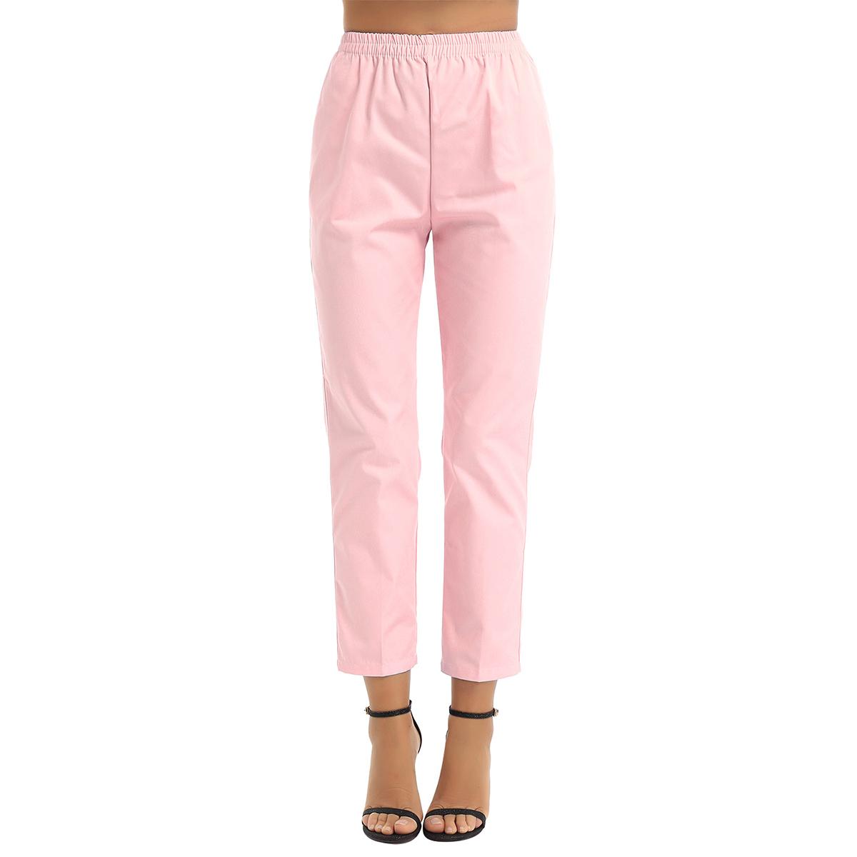 Женские эластичные брюки-скрабы, прямые брюки с эластичным поясом, длинные брюки для ухода за больными розовый