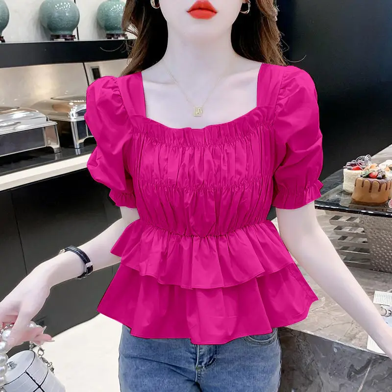 Женские элегантные кружевные блузки, женская укороченная женская шифоновая рубашка в милом сказочном стиле, модный топ Q104