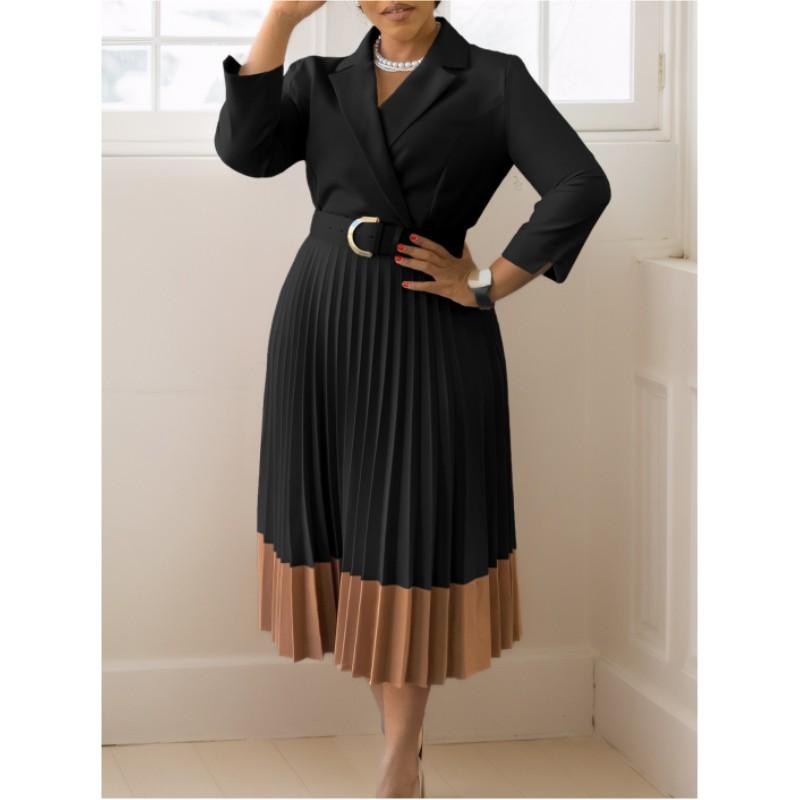 Женские элегантные платья с воротником-стойкой на весну и осень 3XL чёрный