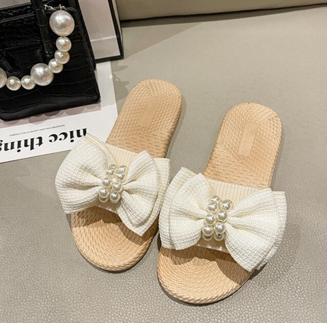 Женские элегантные сандалии с бантом, легкие нескользящие летние туфли на плоской подошве для пляжного отдыха 36-37 слоновая кость