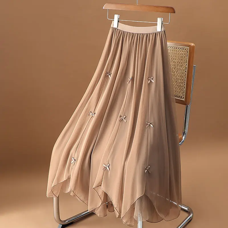 Женские юбки весна-осень, необычная Тюлевая юбка с бантом, женская летняя длинная юбка с высокой талией