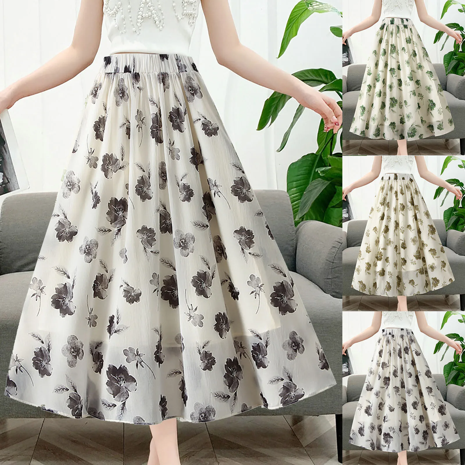 Женские юбки с принтом, длинная Плиссированная юбка с рюшами, лето 2024, женская вечерняя юбка с оборками