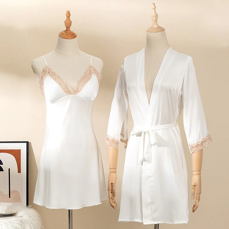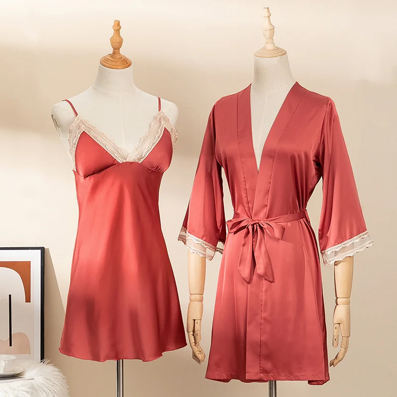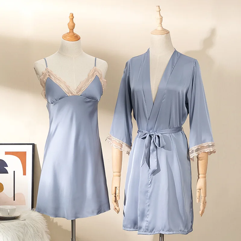 Женский Атласный халат, темно-зеленый, с V-образным вырезом и кружевными вставками на груди